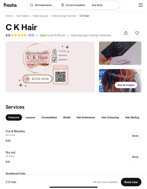 Our Fresha online booking system is super easy to use! You can book at any time via the link below. You will also find client reviews and salon photos.